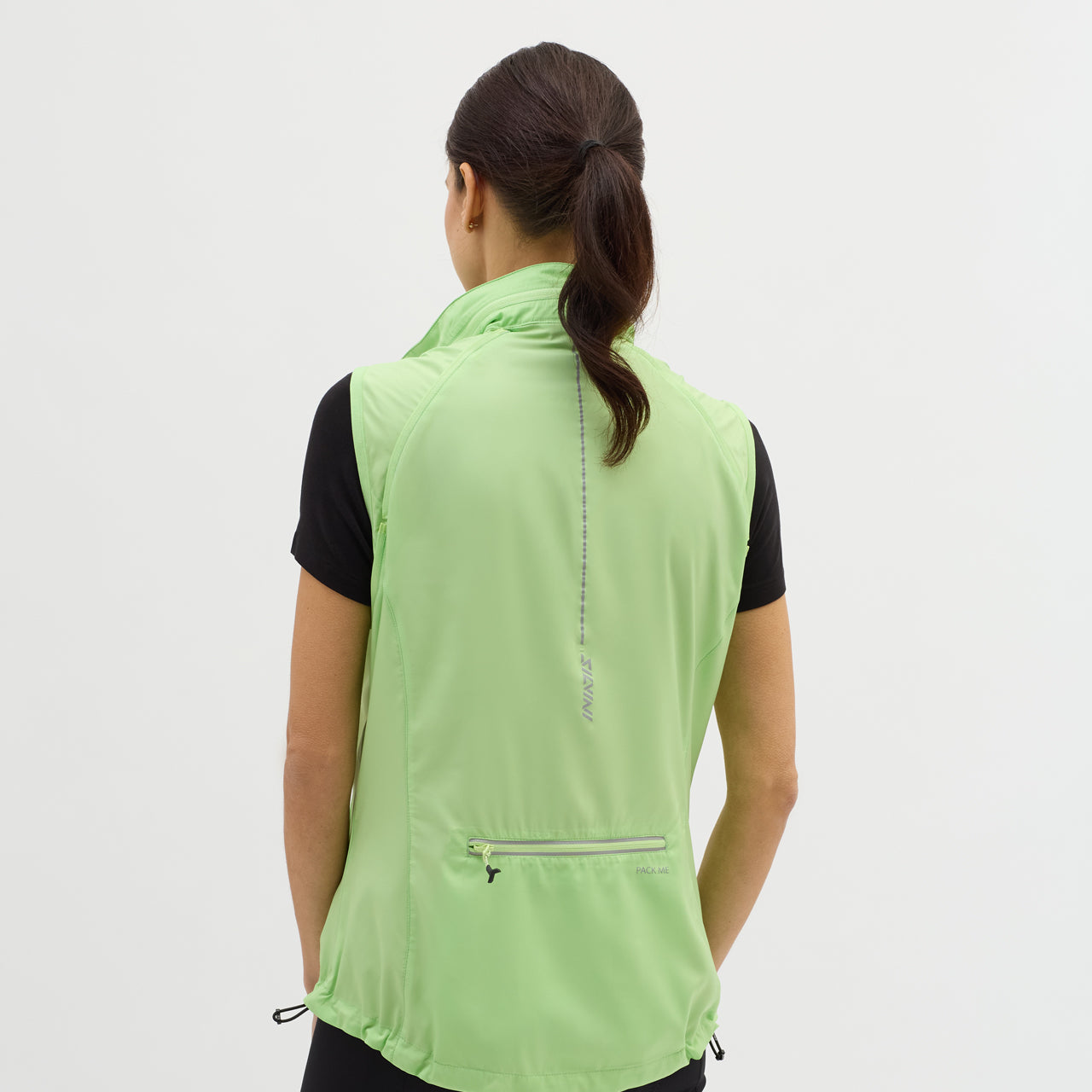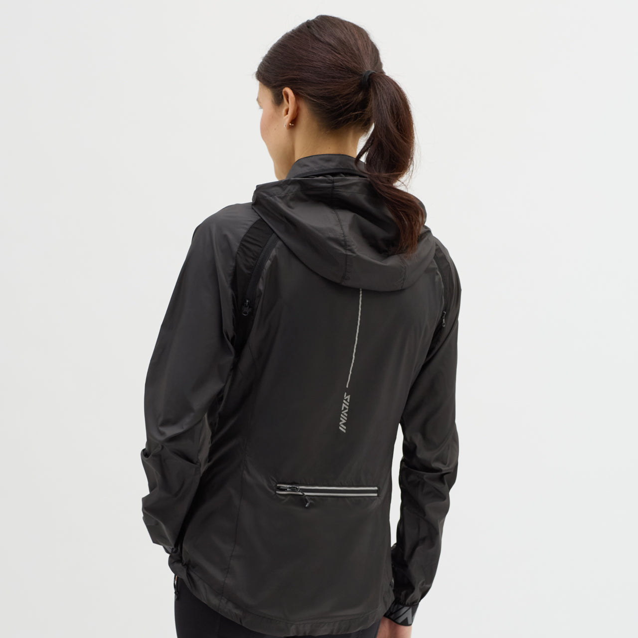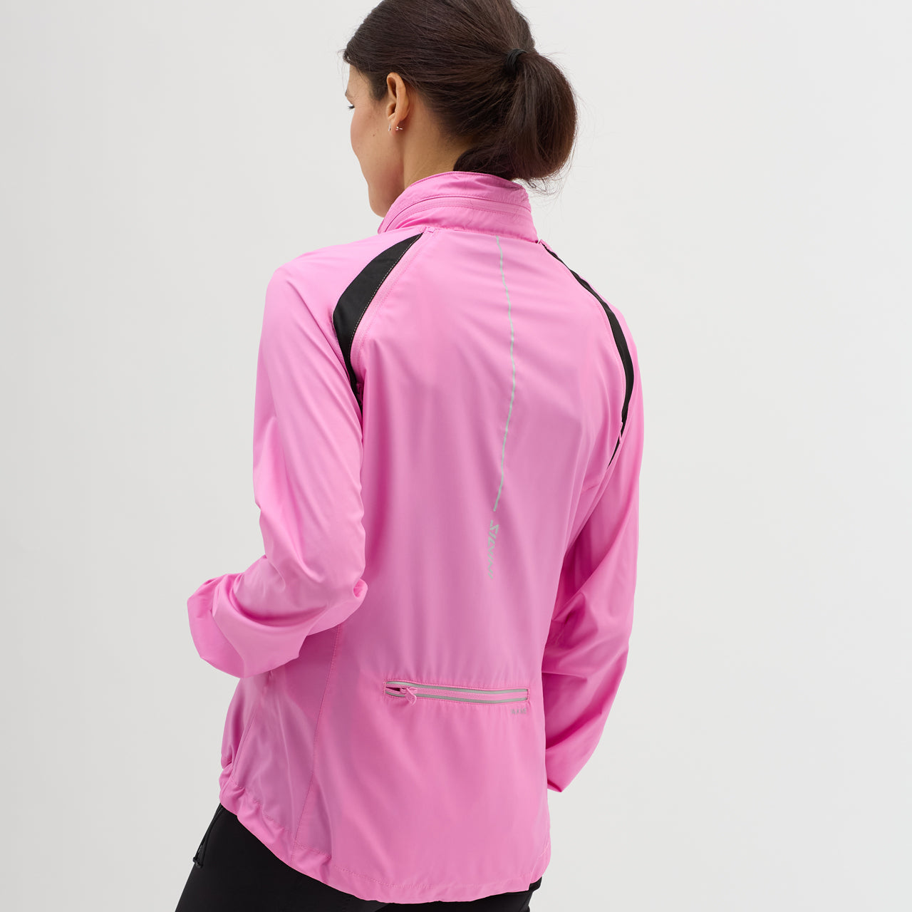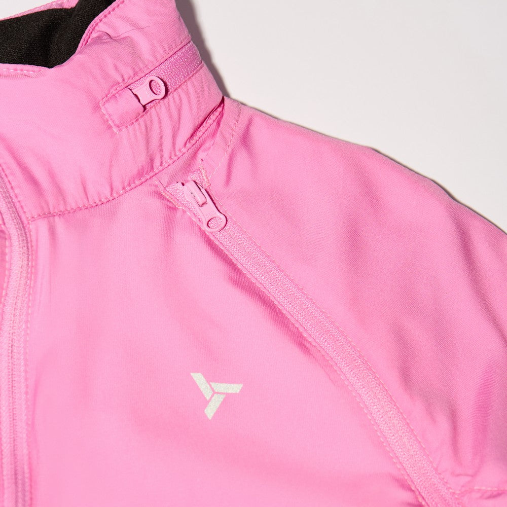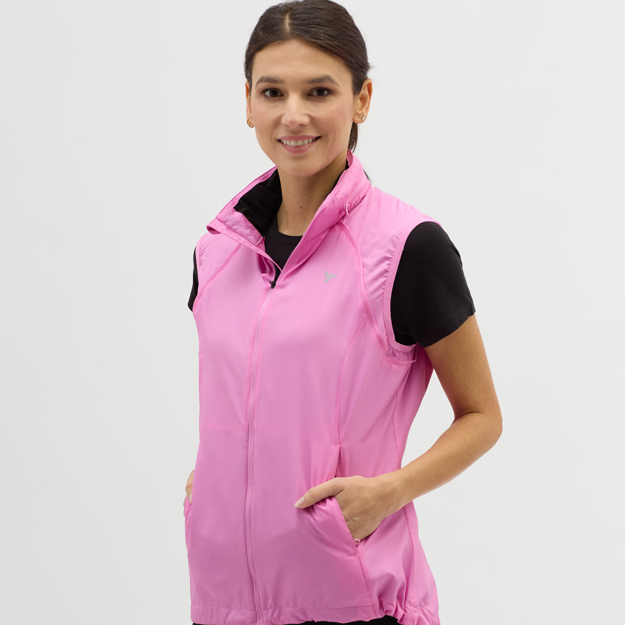 Women's windproof jacket made of Windbreaker material, packable in a small bag. By unbuttoning the sleeves, it turns into a vest, the hood can be folded into the collar. It has three zipped pockets, lower hem closure and reflexes.