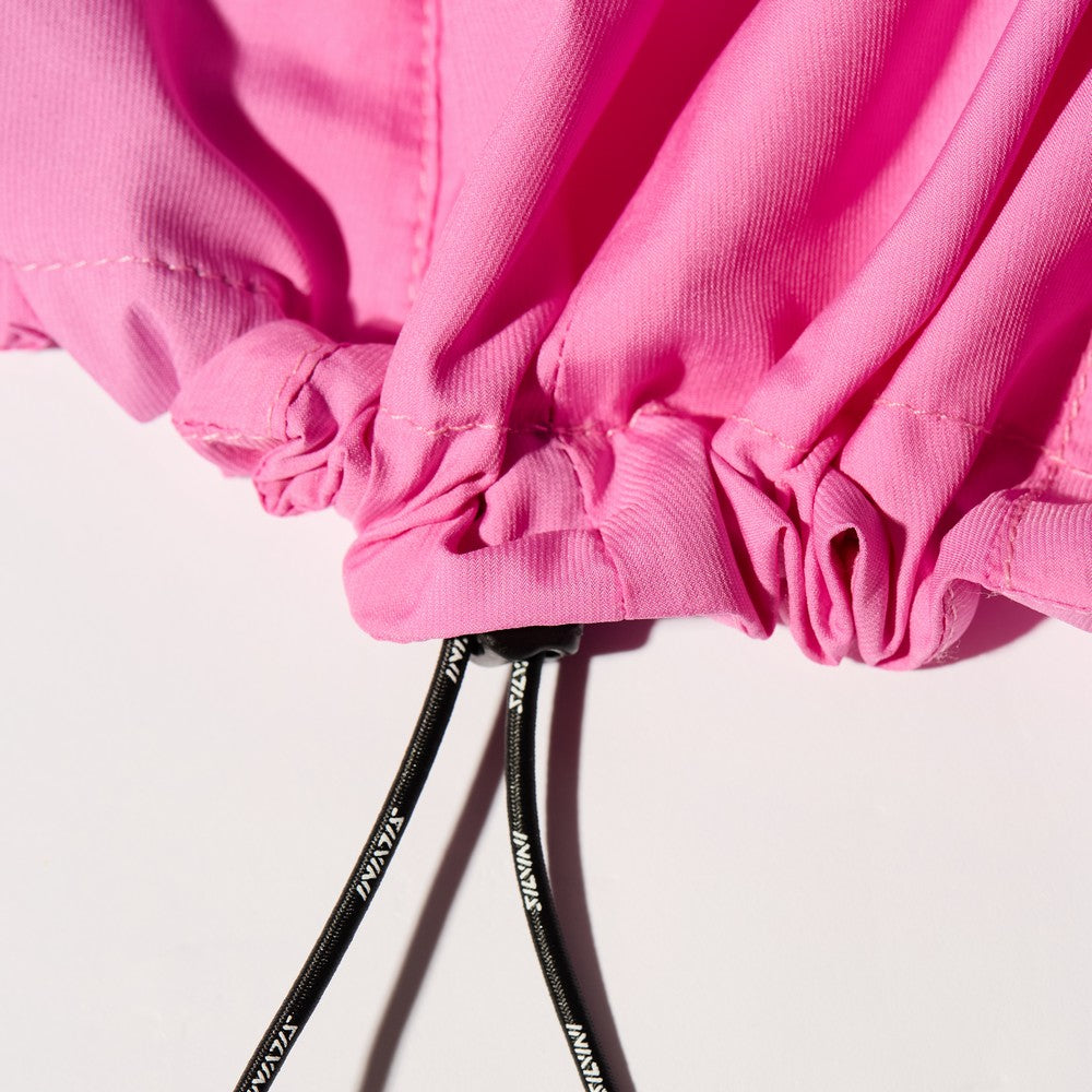 The Vetta is a women's lightweight jacket with removable sleeves, made of windproof, breathable and durable Windbreaker material. Thanks to the detachable sleeves, the jacket can be transformed into a practical vest in a few seconds. The jacket is characterized by a loose cut, a full-length YKK® zipper in the front, two side zippered pockets and a medium-sized pocket on the back. The entire jacket can be easily packed into this pocket and conveniently transported under a saddlebag or attached to the handlebars of a bicycle. The sewn-in straps with Velcro, which are part of the packed state of the jacket, will help you to fasten them. The back part of the jacket is elongated, and there are elastic bands on the sides, which allow regulation of the width of the jacket. The hood, hidden in the collar, has its own drawstring for optimal comfort. The sleeves are finished with a wider rubber hem, and reflective elements are placed throughout the jacket, increasing safety in the dark and in reduced visibility. This multifunctional jacket is suitable not only for cycling, but also for a wide range of outdoor activities.