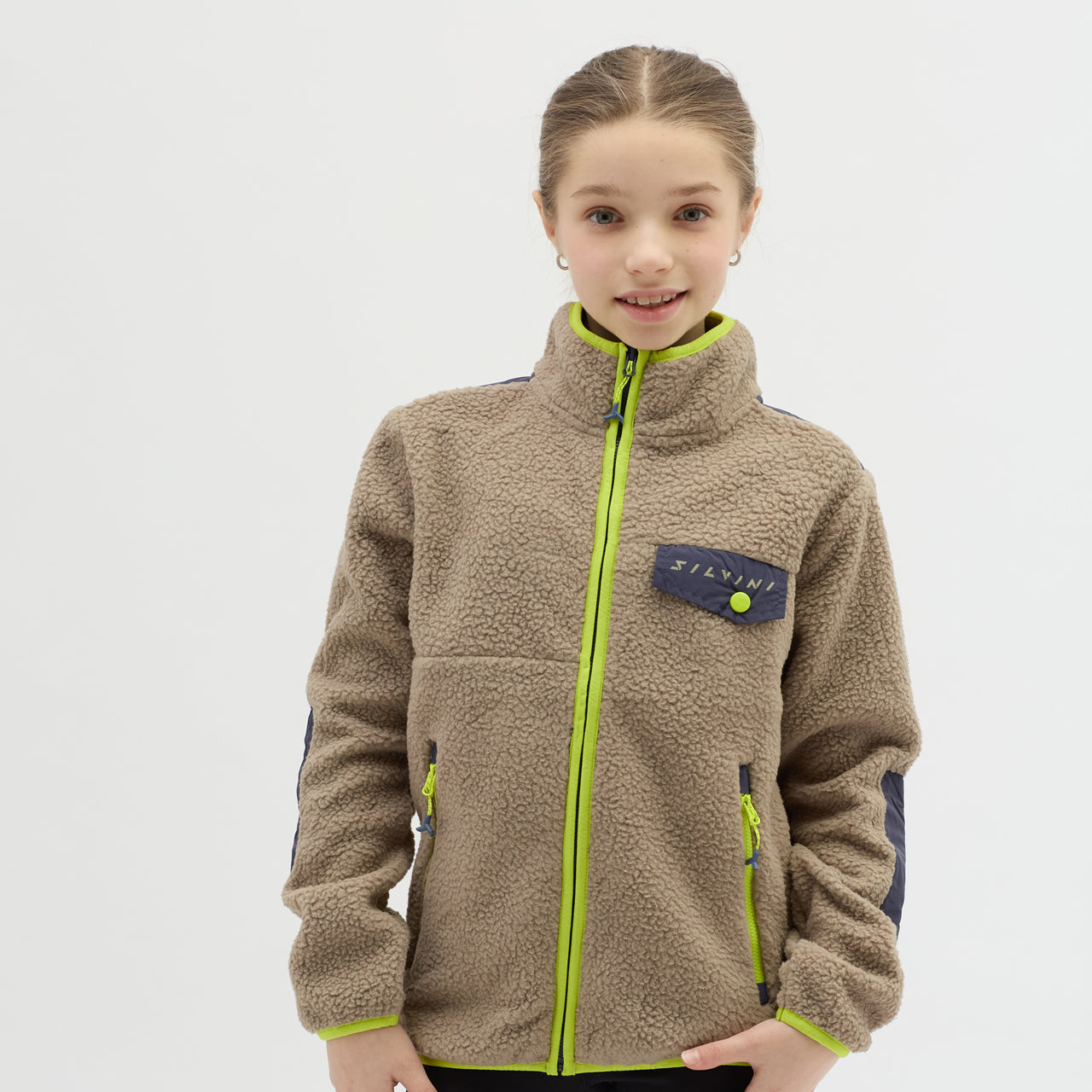 The Ortisei children’s fleece is made from recycled Termico Fleece, offering warmth, practical pockets, and reflective details for safe outdoor activities.
