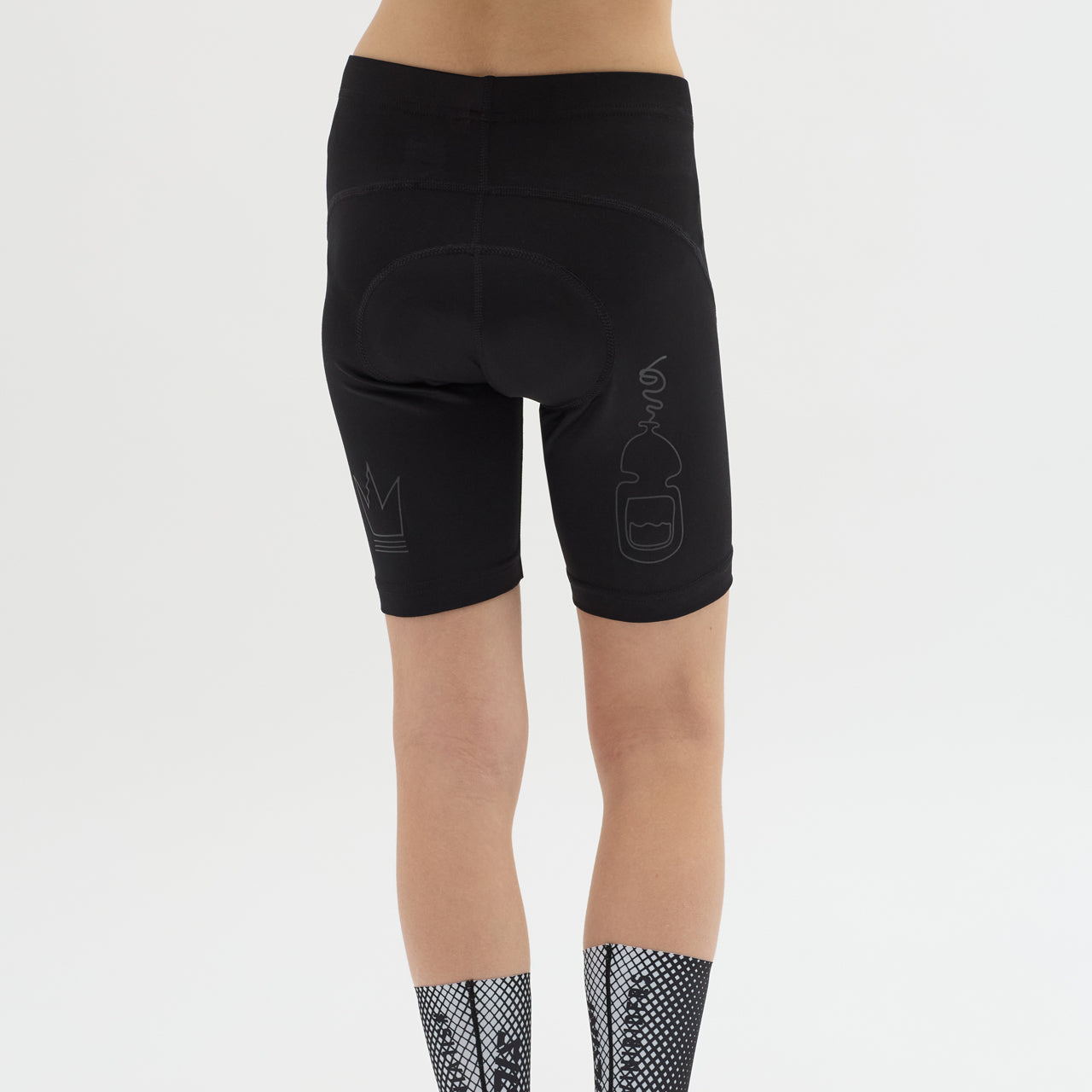 Children's elastic cycling shorts with Basic+ insole, made of Compress power and QuatroFLEX materials. The inside of the legs is lined with a non-slip silicone print, there are reflective elements.