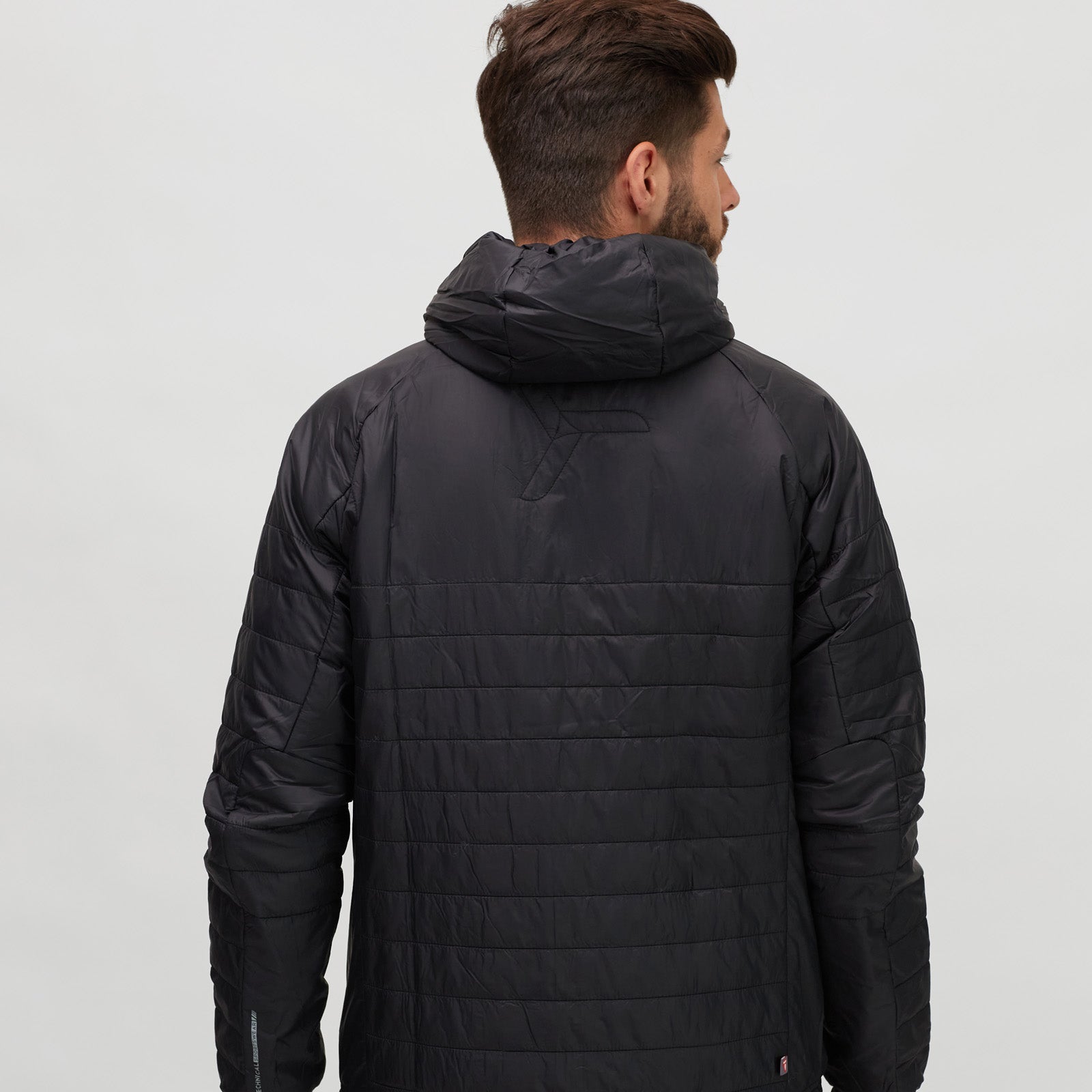 Rutor is a men’s windproof insulated hooded jacket, lightweight, breathable, and packable, ideal for outdoor activities, hiking, cross-country skiing, and casual wear.