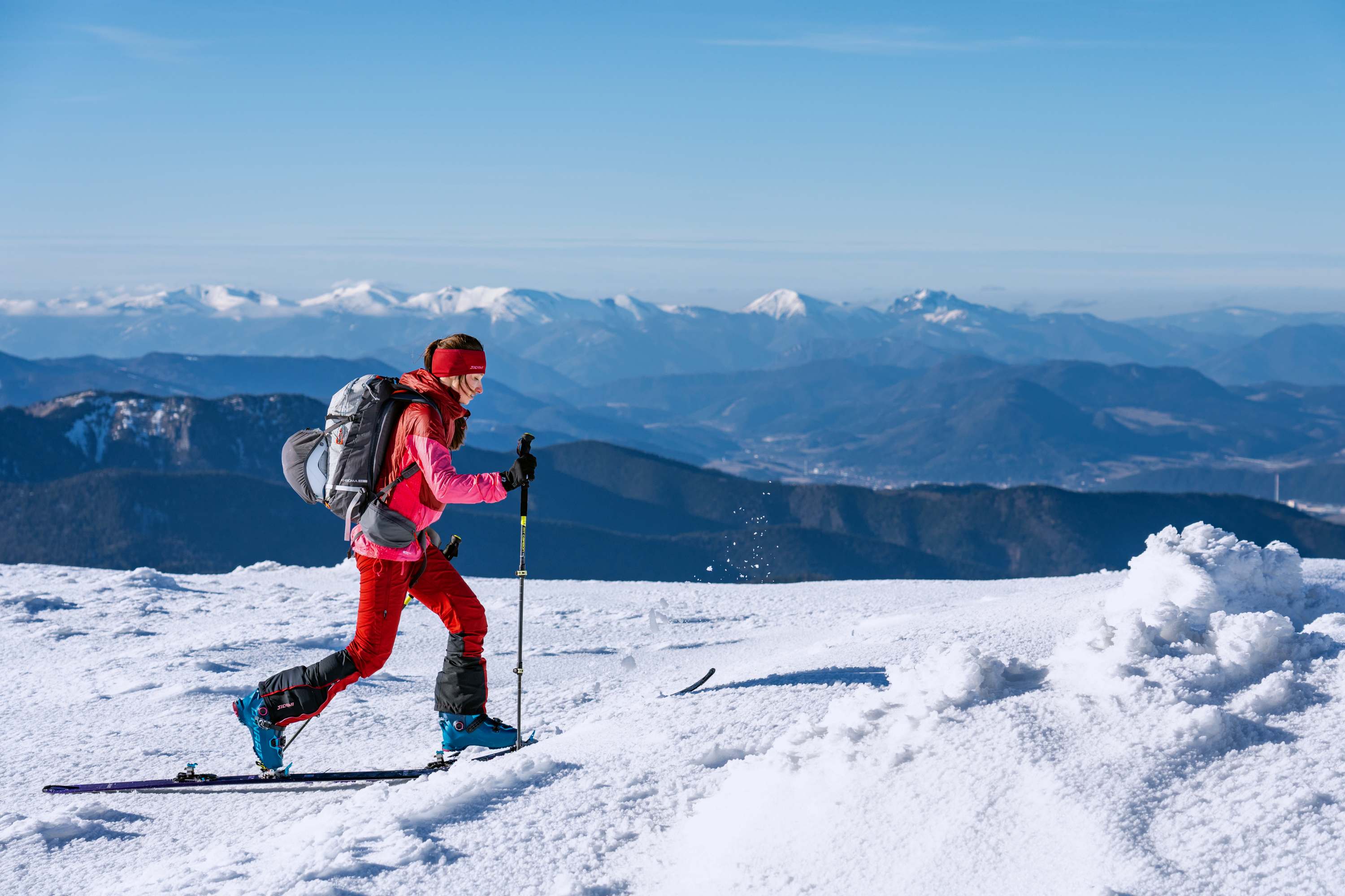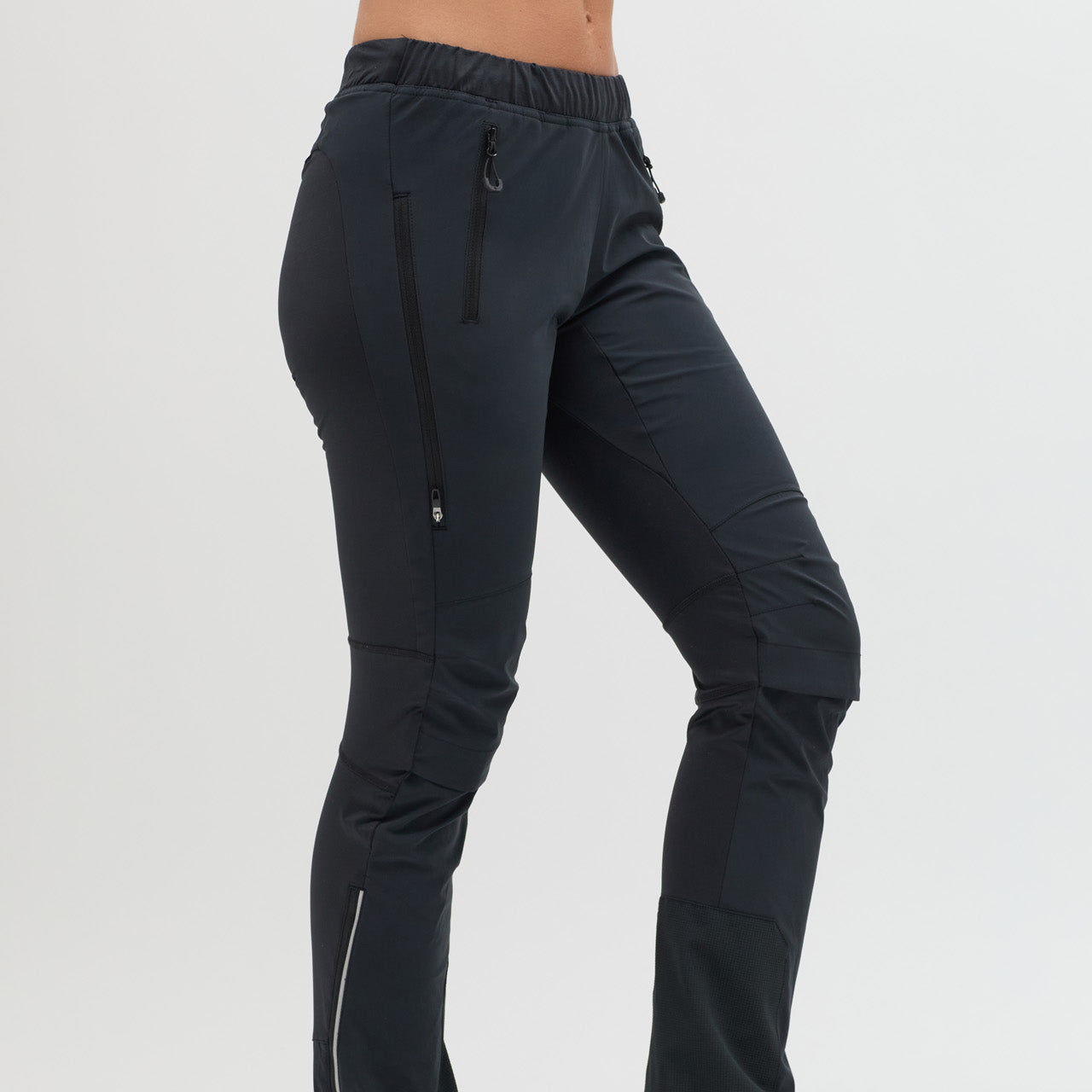 Women's windproof, breathable Soracte pants for ski touring, cross-country skiing, and outdoor activities. Anatomical fit, elastic knees, and reflective details ensure comfort and safety.